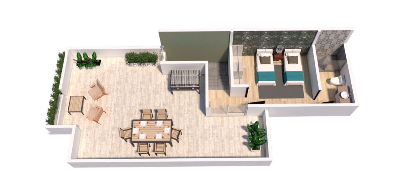 Con espectacular doble altura, iluminación natural y espacios perfectamente creados para vivir al más alto nivel. Se distingue por un enorme Roof Garden, una extraordinaria luminosidad y la intimidad que da contar con baño en cada habitación.